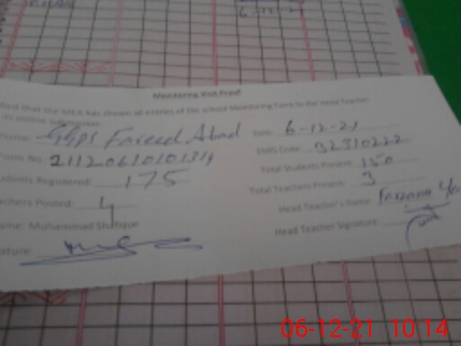 | EMIS Code: 32310222 | Name of School: GGPS FARID ABAD | |||