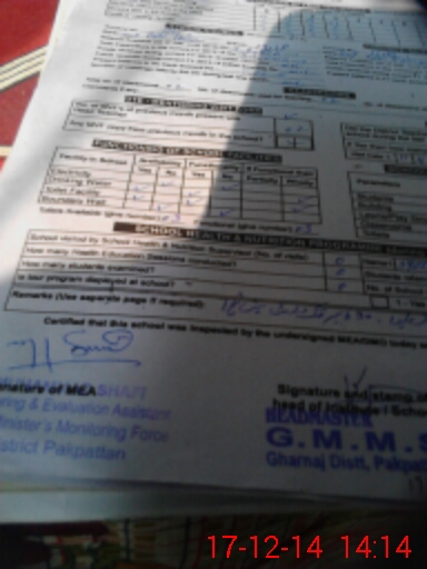 | Certified that this School was Inspected by the Undersigned MEA/DMO Today and the Information Stated Above is as Per Record. | |||||