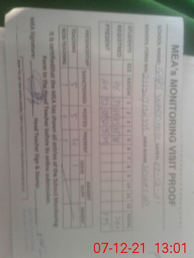 | Attendance Register | Head Teacher | MEA with School | Visit Proof |
