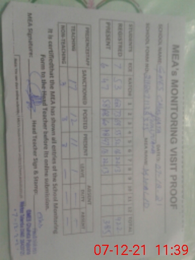 | Attendance Register | Head Teacher | MEA with School | Visit Proof |