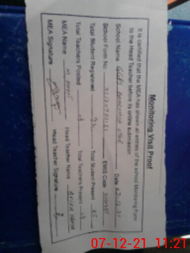 | Certified that this School was Inspected by the Undersigned MEA/DMO Today and the Information Stated Above is as Per Record. | |||||