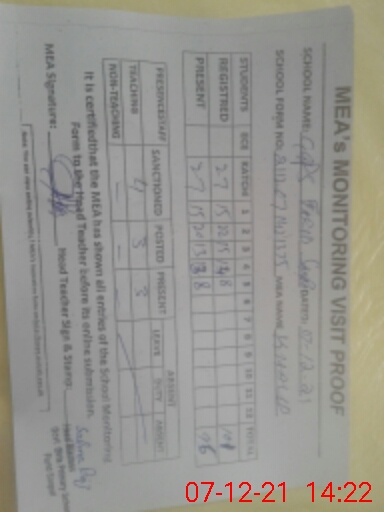 | Certified that this School was Inspected by the Undersigned MEA/DMO Today and the Information Stated Above is as Per Record. | |||||