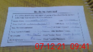 | Monitoring Date: 07-12-2021 | Start Time: 07-12-2021 09:16 AM | End Time: 07-12-2021 09:41 AM | Name of MEA: Za**** Iq**** BN**** | |