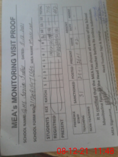 | Attendance Register | Head Teacher | MEA with School | Visit Proof |