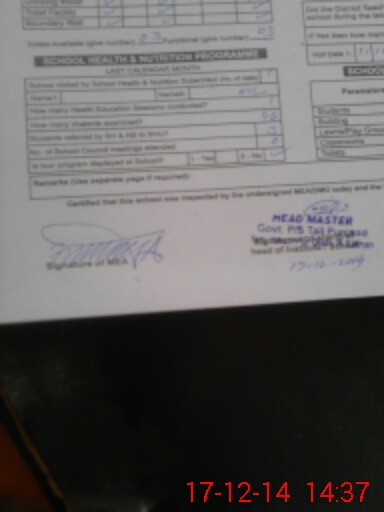| Certified that this School was Inspected by the Undersigned MEA/DMO Today and the Information Stated Above is as Per Record. | |||||