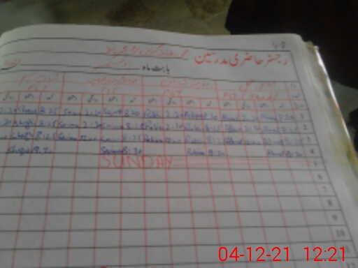 | CNIC | Full Name | Designation | R/C | Absence During Last Calender Month |
