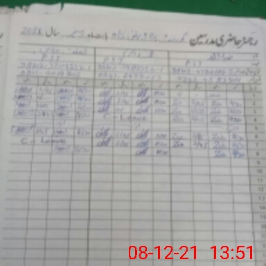 | CNIC | Full Name | Designation | R/C | Absence During Last Calender Month |