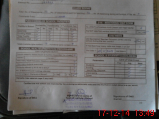 | Remarks (Use Separate Page if Required): No administrators visit Head teacher picture not permit | |||||