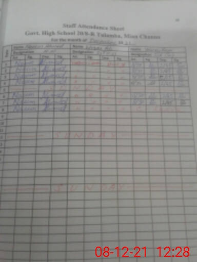 | EMIS Code: 36430032 | Name of School: GHS 20/8-R, TULAMBA | |||