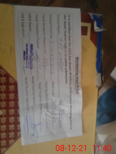 | Attendance Register | Head Teacher | MEA with School | Visit Proof |