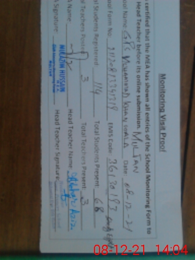 | Certified that this School was Inspected by the Undersigned MEA/DMO Today and the Information Stated Above is as Per Record. | |||||