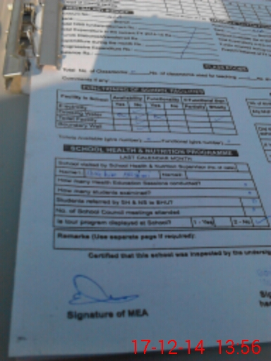 | Attendance Register | Head Teacher | MEA with School | Visit Proof |