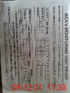 | Monitoring Date: 09-12-2021 | Start Time: 09-12-2021 10:19 AM | End Time: 09-12-2021 11:37 AM | Name of MEA: Sh**** Na**** | |