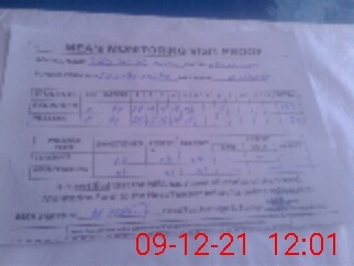 | Monitoring Date: 09-12-2021 | Start Time: 09-12-2021 10:44 AM | End Time: 09-12-2021 12:01 PM | Name of MEA: MU**** AS**** | |
