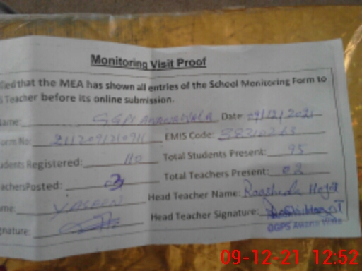 | EMIS Code: 38310263 | Name of School: GGES AWANA WALA | |||