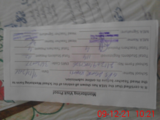 | Attendance Register | Head Teacher | MEA with School | Visit Proof |