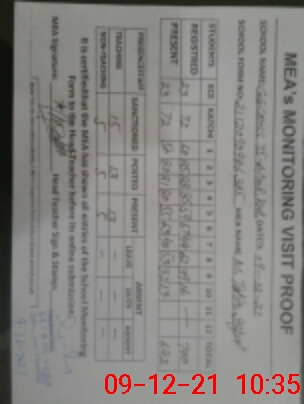 | Attendance Register | Head Teacher | MEA with School | Visit Proof |