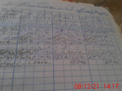 | CNIC | Full Name | Designation | R/C | Absence During Last Calender Month |