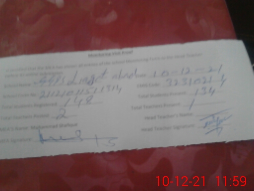 | Certified that this School was Inspected by the Undersigned MEA/DMO Today and the Information Stated Above is as Per Record. | |||||