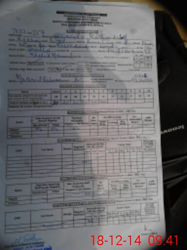 | Monitoring Date: 18-12-2014 | Start Time: 18-12-2014 09:40 AM | End Time: 18-12-2014 09:51 AM | Name of MEA: Mu**** As**** KP**** | |