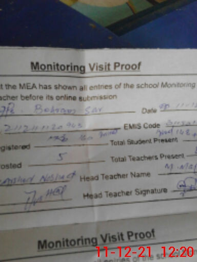 | Attendance Register | Head Teacher | MEA with School | Visit Proof |