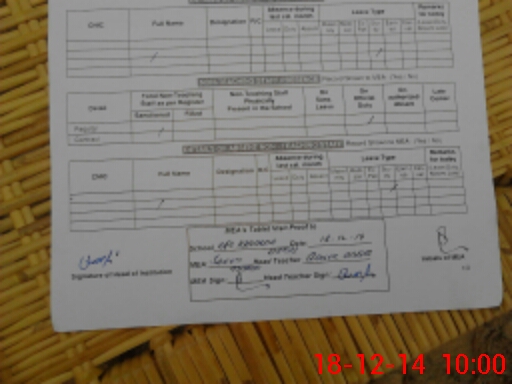 | Attendance Register | Head Teacher | MEA with School | Visit Proof |