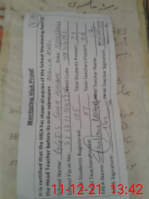 | Certified that this School was Inspected by the Undersigned MEA/DMO Today and the Information Stated Above is as Per Record. | |||||