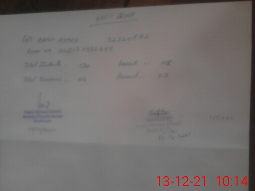| Total no. of Classrooms: 2 No. of Classrooms Used for Teaching: 2 No. of Classrooms Storing Old Furniture, FTBs, etc: 0Comments if Any: NIL |