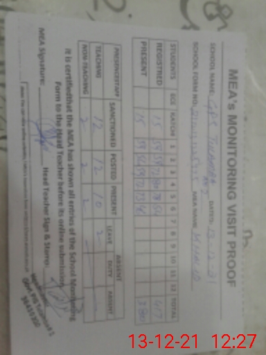 | Attendance Register | Head Teacher | MEA with School | Visit Proof |