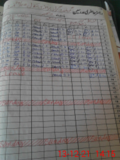 | CNIC | Full Name | Designation | R/C | Absence During Last Calender Month |