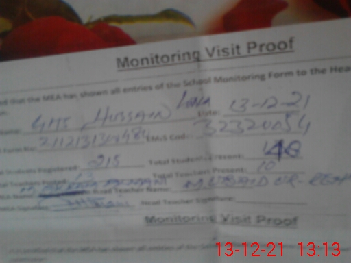 | EMIS Code: 32320054 | Name of School: GHS HUSSAIN WALA | |||