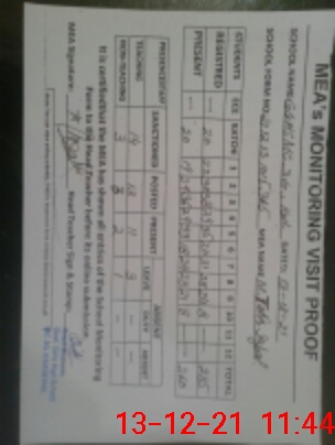| Attendance Register | Head Teacher | MEA with School | Visit Proof |