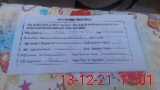 | Monitoring Date: 13-12-2021 | Start Time: 13-12-2021 10:50 AM | End Time: 13-12-2021 11:01 AM | Name of MEA: Za**** Iq**** BN**** | |