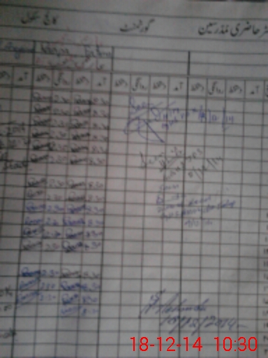 | CNIC | Full Name | Designation | R/C | Absence During Last Calender Month |