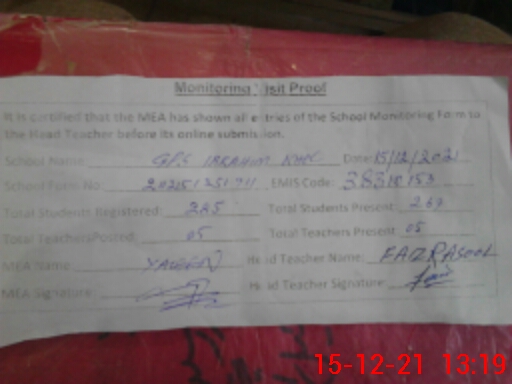 | EMIS Code: 38310153 | Name of School: GPS IBRAHIM KHEL PO TRAGH ISA KHEL MIANWALI | |||