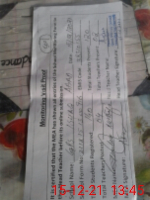 | Attendance Register | Head Teacher | MEA with School | Visit Proof |