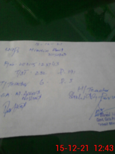 | Name: Sh**** Pe**** Designation: (School Headmaster's/Headmistress's) PST Phone/Cell Number: 03**** |