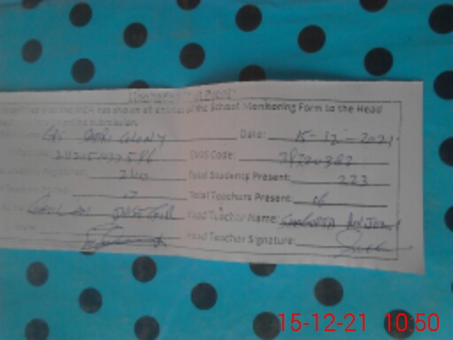 | Attendance Register | Head Teacher | MEA with School | Visit Proof |