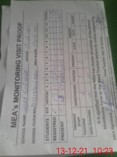 | Attendance Register | Head Teacher | MEA with School | Visit Proof |