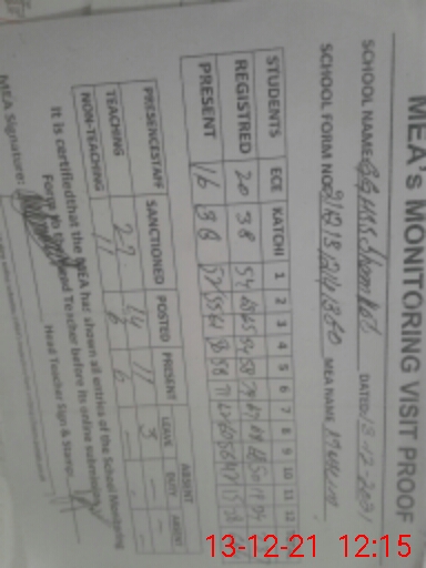 | Attendance Register | Head Teacher | MEA with School | Visit Proof |