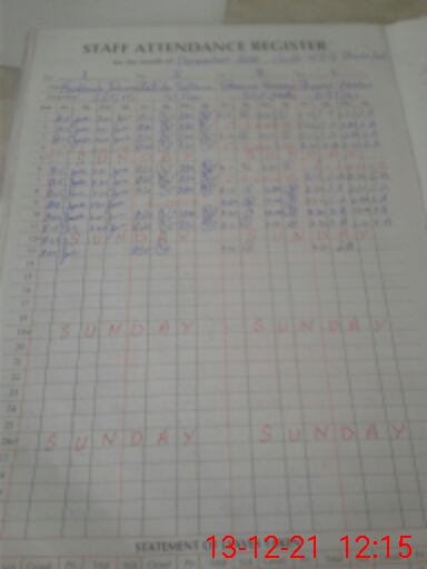 | CNIC | Full Name | Designation | R/C | Absence During Last Calender Month |