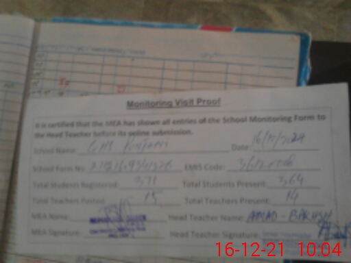 | Certified that this School was Inspected by the Undersigned MEA/DMO Today and the Information Stated Above is as Per Record. | |||||