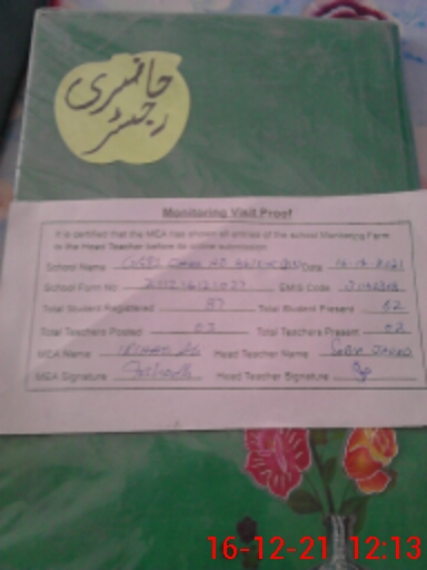 | Attendance Register | Head Teacher | MEA with School | Visit Proof |