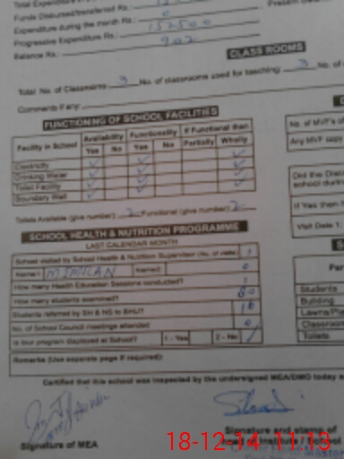 | Total no. of Classrooms: 3 No. of Classrooms Used for Teaching: 3 No. of Classrooms Storing Old Furniture, FTBs, etc: 0Comments if Any: Ok |