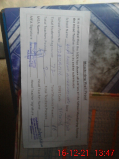| Certified that this School was Inspected by the Undersigned MEA/DMO Today and the Information Stated Above is as Per Record. | |||||