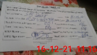 | Monitoring Date: 16-12-2021 | Start Time: 16-12-2021 11:03 AM | End Time: 16-12-2021 11:18 AM | Name of MEA: AA**** QA**** AB**** | |
