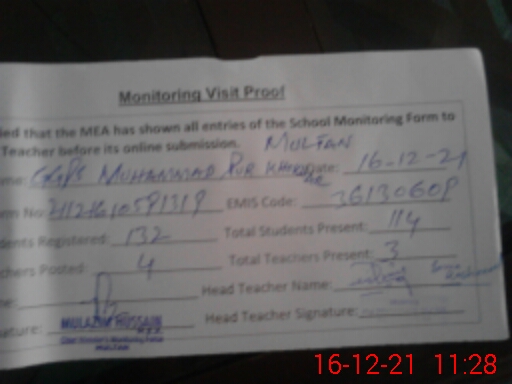 | EMIS Code: 36130609 | Name of School: GGPS MUHAMMAD PUR KHOKHAR | |||