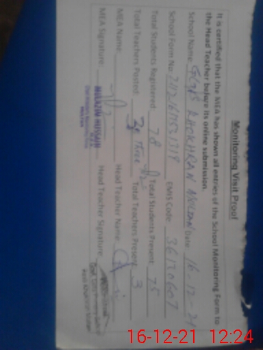 | Certified that this School was Inspected by the Undersigned MEA/DMO Today and the Information Stated Above is as Per Record. | |||||