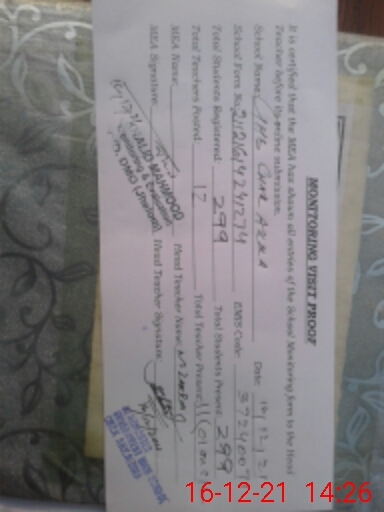 | Certified that this School was Inspected by the Undersigned MEA/DMO Today and the Information Stated Above is as Per Record. | |||||