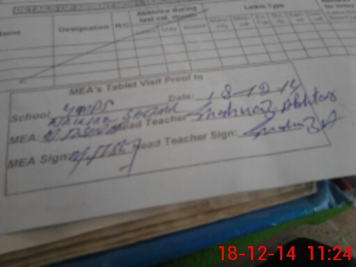 | Attendance Register | Head Teacher | MEA with School | Visit Proof |